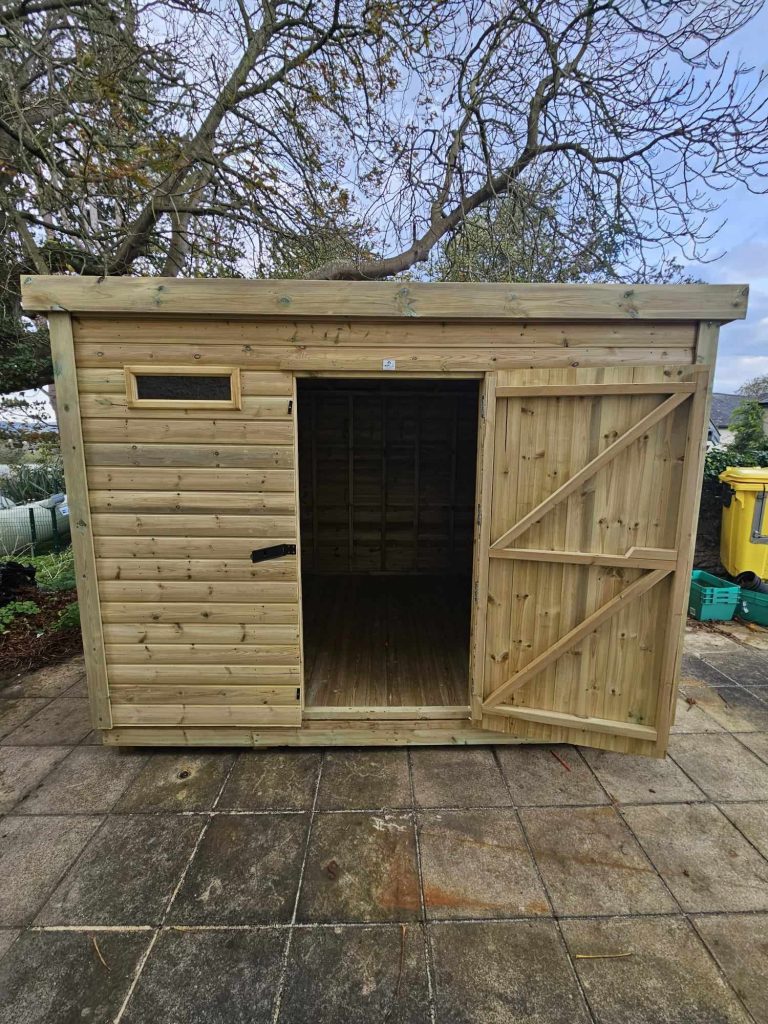 Like our budget range and the Pent shed with 2”x2” framing, this building is manufactured from 12mm or 16mm tanalised timber and comes as standard with joinery made windows, fully framed door, T-Hinges, sliding bolt lock, sloping roof and Tanalith E Treatment. However, this building has 3” x 2” framework throughout and is available in a large range of sizes.