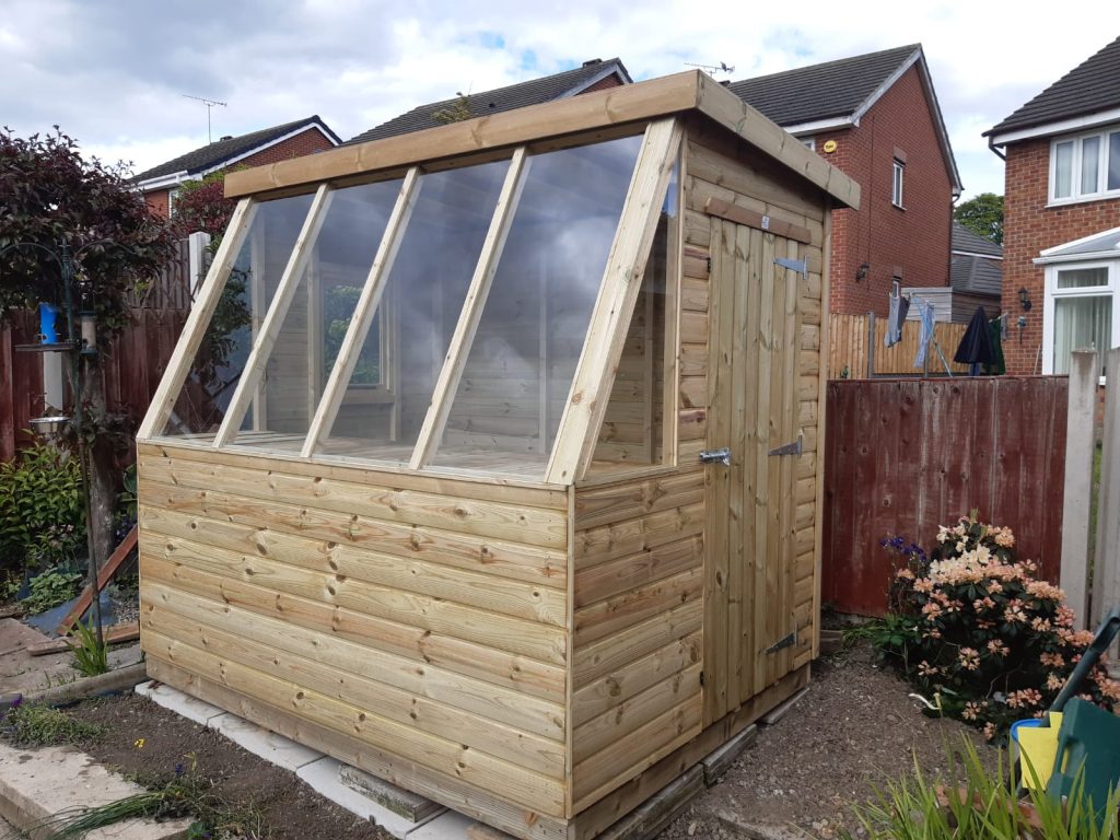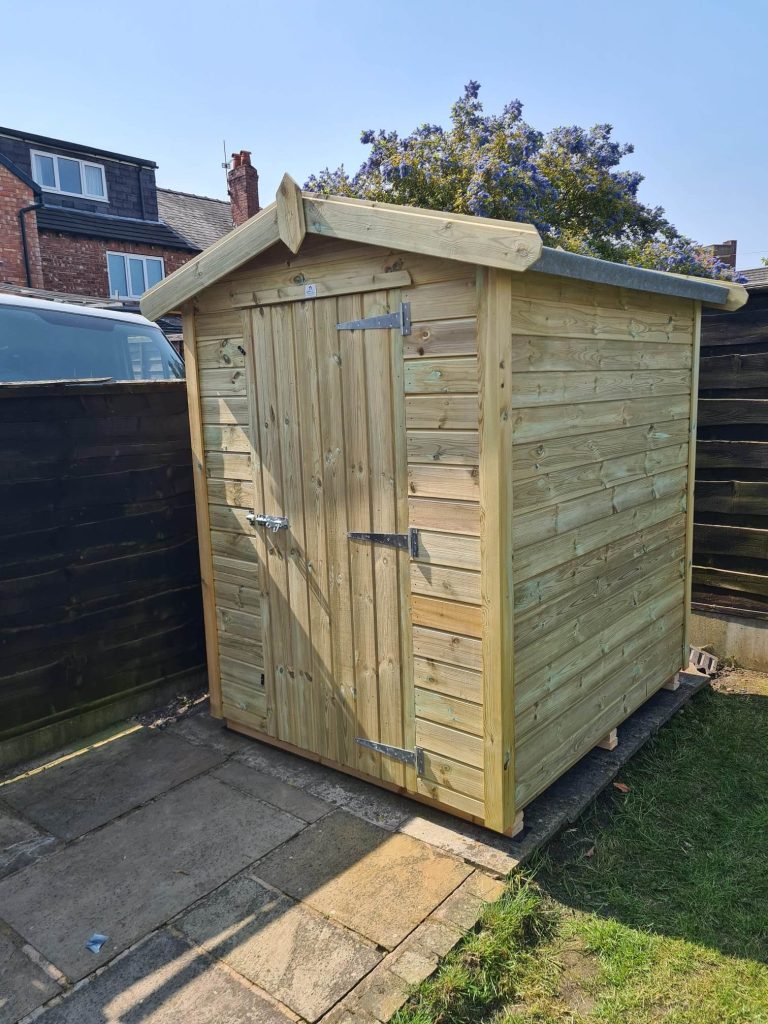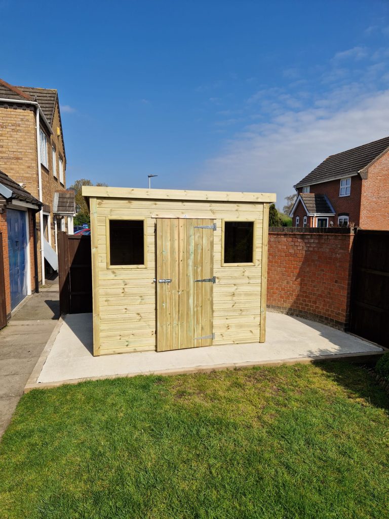 Our budget tanalised sheds come with full 12mm tongue and groove cladding, Joinery made windows, fully framed door, 2”x1” framework, T-Hinges & Slide bolt lock, sloping roof and Tanalith E Treatment.