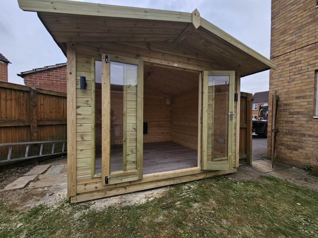 Horizontally cladded with Canadian Western Red Cedar, the Cedarwood Royal comes as standard with an EDPM firestone rubber roof, single glazed double doors and 4 fixed windows with anthracite grey painted frames and a breathable vapour barrier. Add in our internal cladding package and electric package at an additional cost to make this a fully insulated garden room! A stunning additional to any garden.