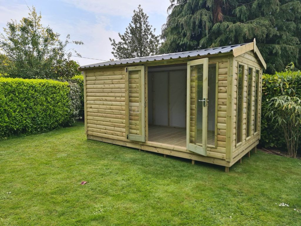 New to the cottage range for 2023, the Thirlmere Cottage combines the robustness and strength of our Derwent Cottage model but gives the feel of a summer house by incorporating the Royal double doors and 2 Royal windows. The building also comes with a box section metal roof, 20mm loglap cladding, vapour barrier, 3” x 2” framing and 2ft overhang at the front of the building.