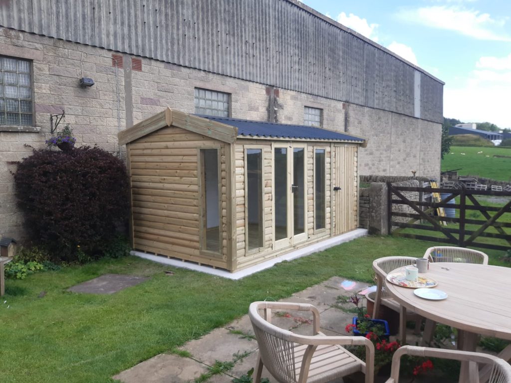 New to the cottage range for 2023, the Hawkshead Cottage combines the robustness and strength of our Kendal Cottage model but gives the feel of a summer house by incorporating the Royal double doors and 2 Royal windows. The building also comes with a metal roof, 20mm loglap cladding, vapour barrier and 3” x 2” framing.