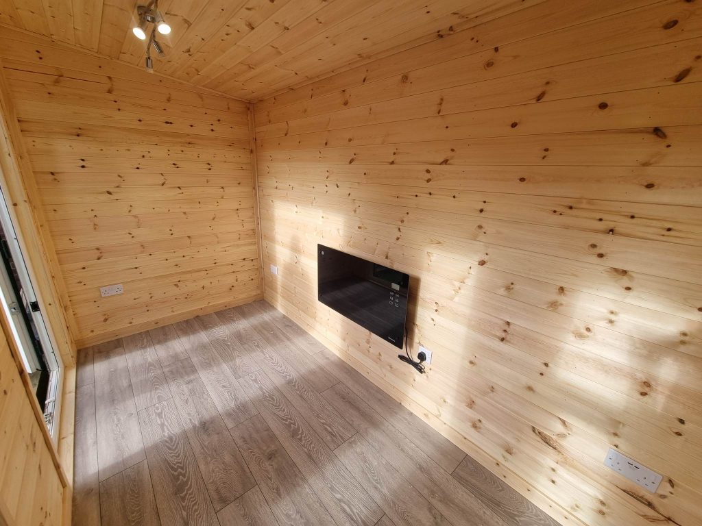 - Full internal cladding package – including space quilt insulation, redwood cladding, floor lining and grey laminate flooring.