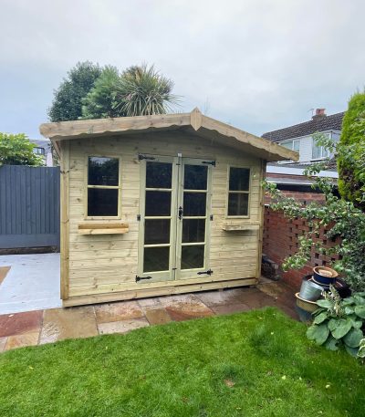 The Piley Lodge is a beautiful summerhouse which features large glass pane double doors and two fixed large glass pane windows. Scalloped fascias come as standard on this model and a veranda can be added at an additional cost to enhance the look of the stunning summer house. Spread the cost of the Piley Lodge with our finance options – available on all models.