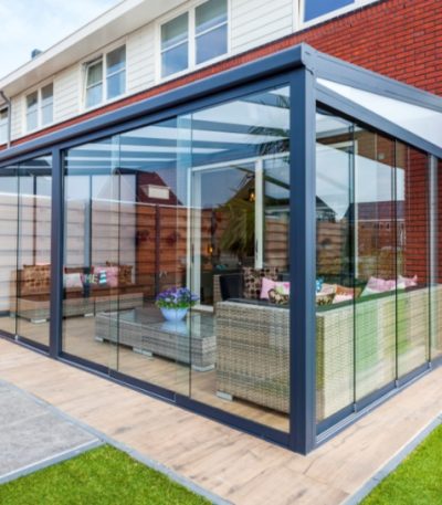 The Pigato is a luxury Alumimium veranda which is reinforced with a steel strip in the gutter profile, allowing the